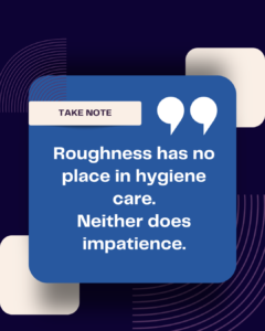 Your presence, patience, and professionalism can make a significant difference in how safe, comfortable, and valued the person feels.